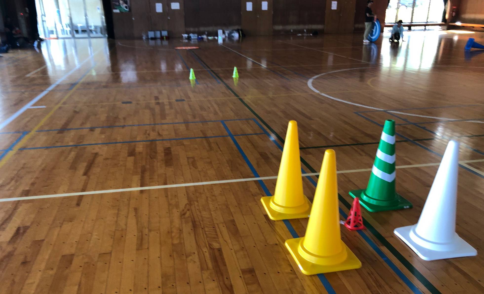 室内で、ホバリング練習と飛行前チェックなどを行いました。