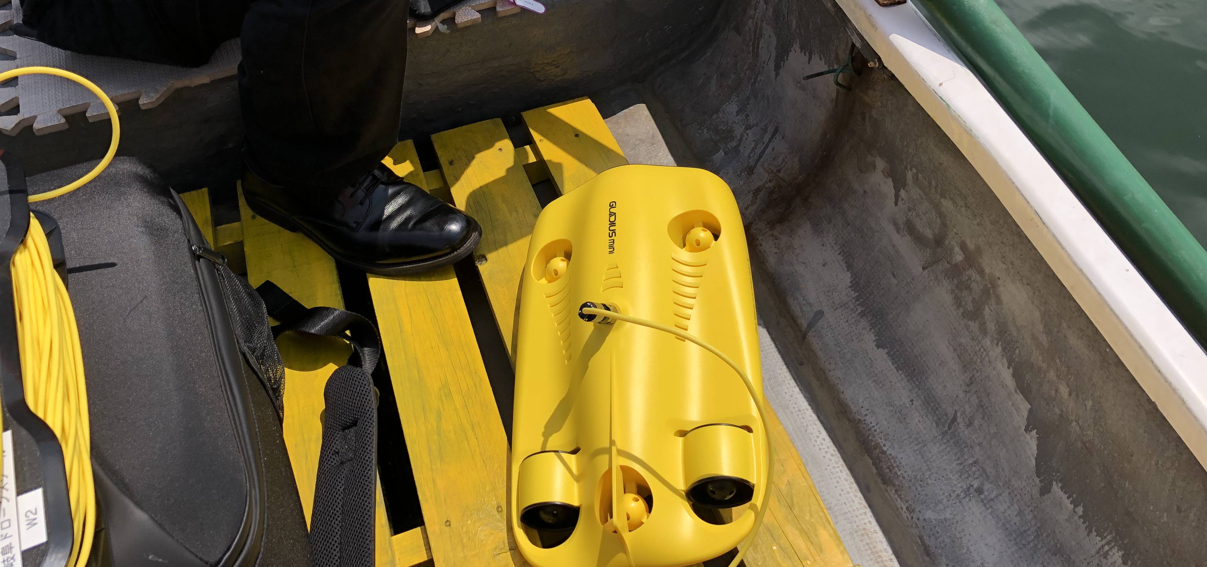 今回は釣り客の方もおりましたが、貸ボートに乗って、岸から離れて潜航させました。