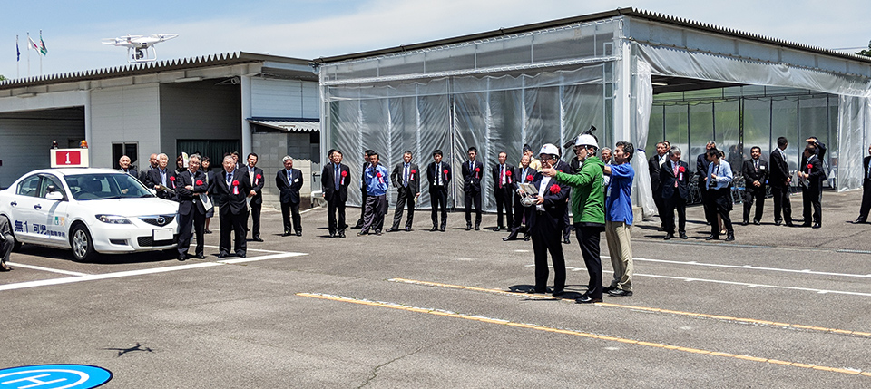 主賓挨拶では、一般社団法人日本UAS産業振興協議会(JUIDA)事務局長 熊田知之様、全国自動車学校ドローンコンソーシアム会長 朽木聖好様の代理の鈴木様にご挨拶いただきました。また、参議院議員 渡辺猛之様にも駆けつけていただき激励のお言葉をいただきました。