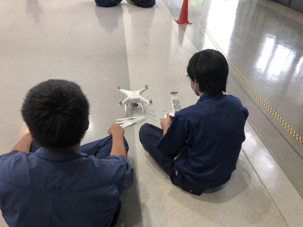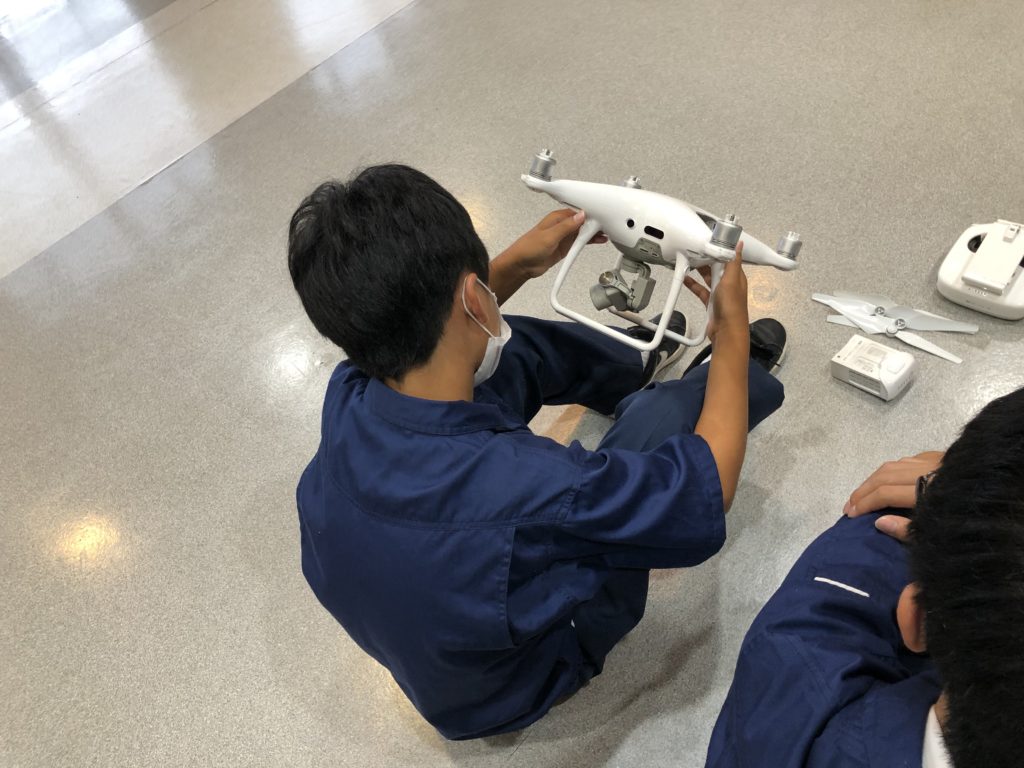 対象が建設工学科の生徒様であるため、将来土木や建築現場に進まれる可能性が高く、今からドローンの基礎操作や最低限の安全対策などを理解してもらおうという講習です。