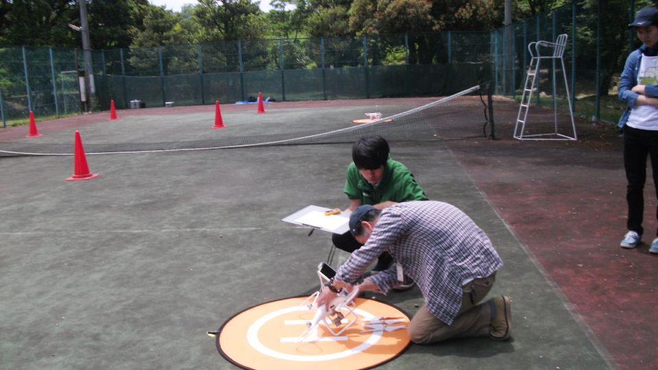 天気も大変よく、風も弱かったため、弊社所有のテニスコートで実習を行いました。