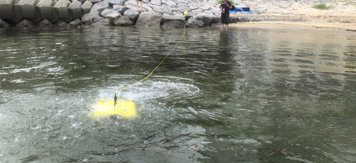 水中ドローンの潜航訓練で海水浴場にいきました。今日は空のドローンはお留守番です。