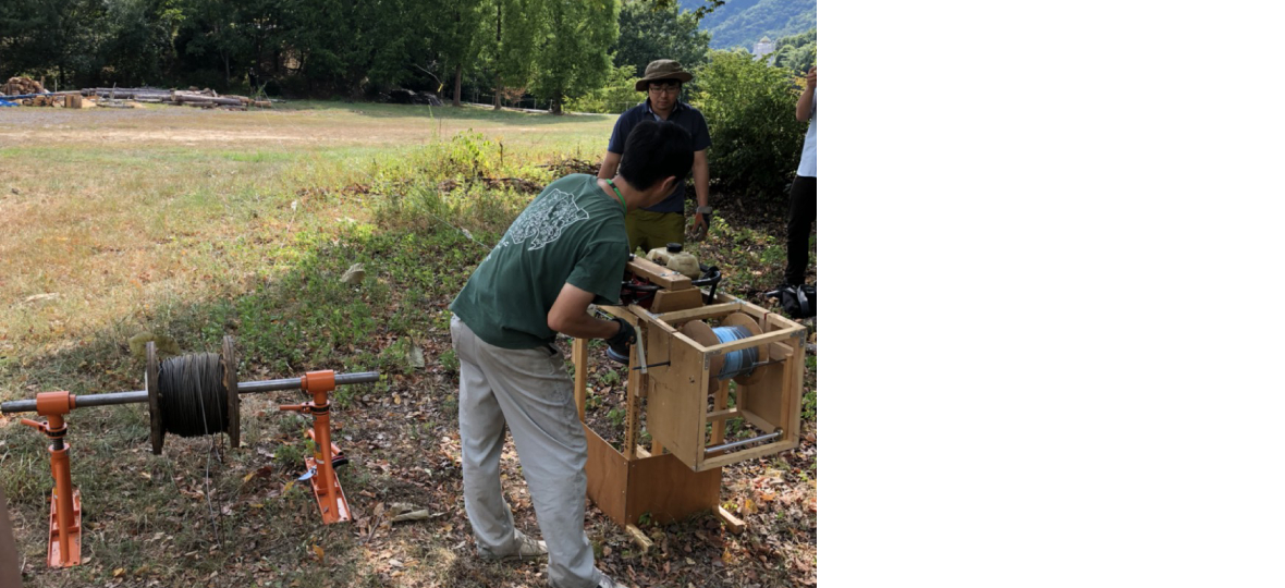 実演していただいた、機材を高所へ運ぶワイヤーを結ぶためにドローンに取り付ける専用機「飛来君」も非常に面白かったです。
