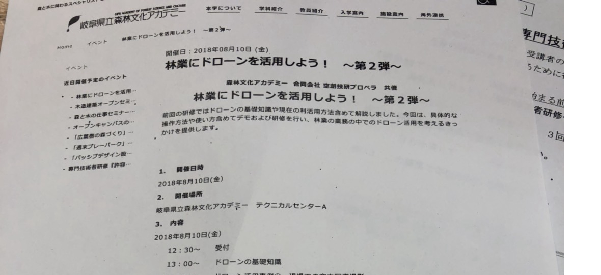 岐阜県美濃市にある、森林文化アカデミーで「林業でドローンを活用しよう!」という林業向けのセミナーが行われました。