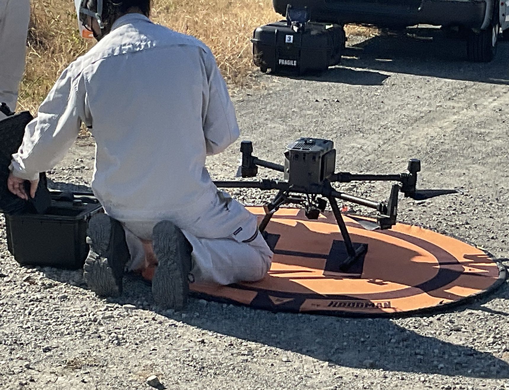 無事にフライトは完了し、RTHで着陸。ヘリパッドの上にピタッと着陸しDJIの性能か褒められておりました。